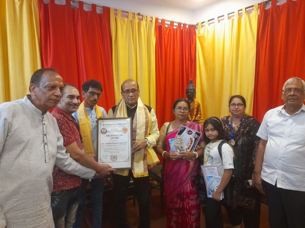অনুষ্ঠানের বিশেষ আকর্ষণ হিসেবে, ওম ইন্টারন্যাশনাল ফাউন্ডেশন ডাঃ সুরেশ কুমার অগরওয়ালকে লাইফস্টাইল মেডিসিনে তার অসামান্য অবদানের জন্য সম্মানজনক ধন্বন্তরি পুরস্কার প্রদান করে। পুরস্কার গ্রহণকালে ডাঃ অগরওয়াল সংস্কৃত শাস্ত্রের উল্লেখ করে বলেন, “একজন চিকিৎসকের কর্তব্য রাজ্য, স্বর্গ বা পুনর্জন্মের জন্য নয়, বরং অসহায় প্রাণীর কষ্ট দূর করার জন্য নিজের শক্তি ও উৎসর্গের মাধ্যমে তাদের আরোগ্য লাভে সহায়তা করা।” এই সম্মাননাটি ডাঃ অগরওয়ালের সাম্প্রতিক সর্দার বল্লভভাই প্যাটেল মেমোরিয়াল অ্যাওয়ার্ড ২০২৪-কে যুক্ত করে, যা গোল্ডেন ইরা বুক অফ ওয়ার্ল্ড রেকর্ডস কর্তৃক শিক্ষাক্ষেত্র, পরিবেশ, মানবাধিকার এবং সামাজিক সচেতনতায় তার ব্যাপক অবদানের জন্য তাকে প্রদান করা হয়েছে।