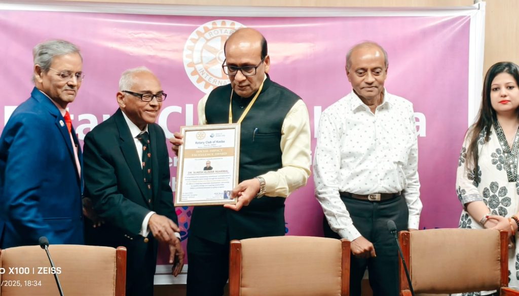 রোটারি ইন্টারন্যাশনালের অন্তর্গত রোটারি ক্লাব অফ কসবা ১লা এপ্রিল ২০২৫, কলকাতার নন্দন ক্যাম্পাসের আবনীন্দ্র সভাঘরে ডঃ সুরেশ কুমার আগরওয়ালকে সামাজিক প্রভাব এক্সেলেন্স পুরস্কারে সম্মানিত করেছে। জাতিসংঘের টেকসই উন্নয়ন লক্ষ্যমাত্রা (UNSDG) প্রচারের মাধ্যমে সমাজে ইতিবাচক পরিবর্তন আনার তাঁর নিরলস প্রচেষ্টার জন্য এই স্বীকৃতি প্রদান করা হয়েছে। টেকসই উন্নয়ন, সমাজের কল্যাণ এবং সামাজিক উদ্যোগে তাঁর অসামান্য অবদান সমাজসেবার ক্ষেত্রে এক নতুন মানদণ্ড স্থাপন করেছে। স্থানীয় উদ্যোগের মাধ্যমে বৈশ্বিক সমস্যার সমাধান করার জন্য তাঁর প্রচেষ্টা ব্যাপক প্রশংসা অর্জন করেছে।