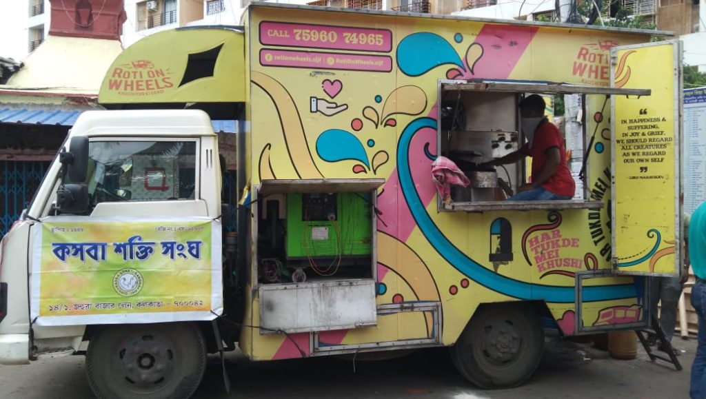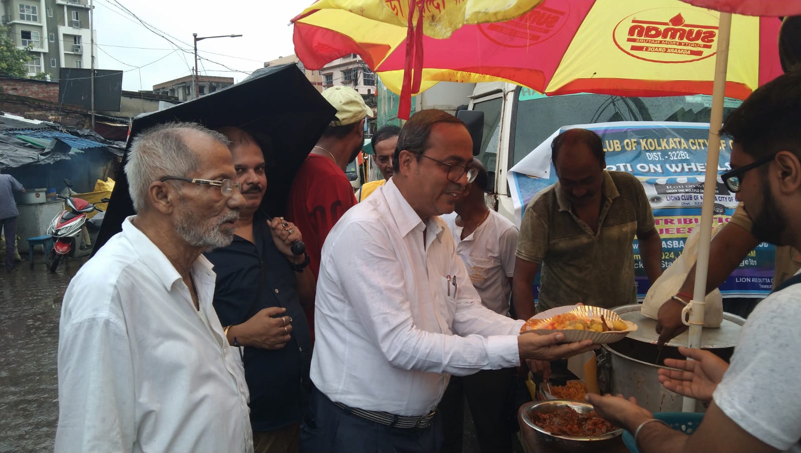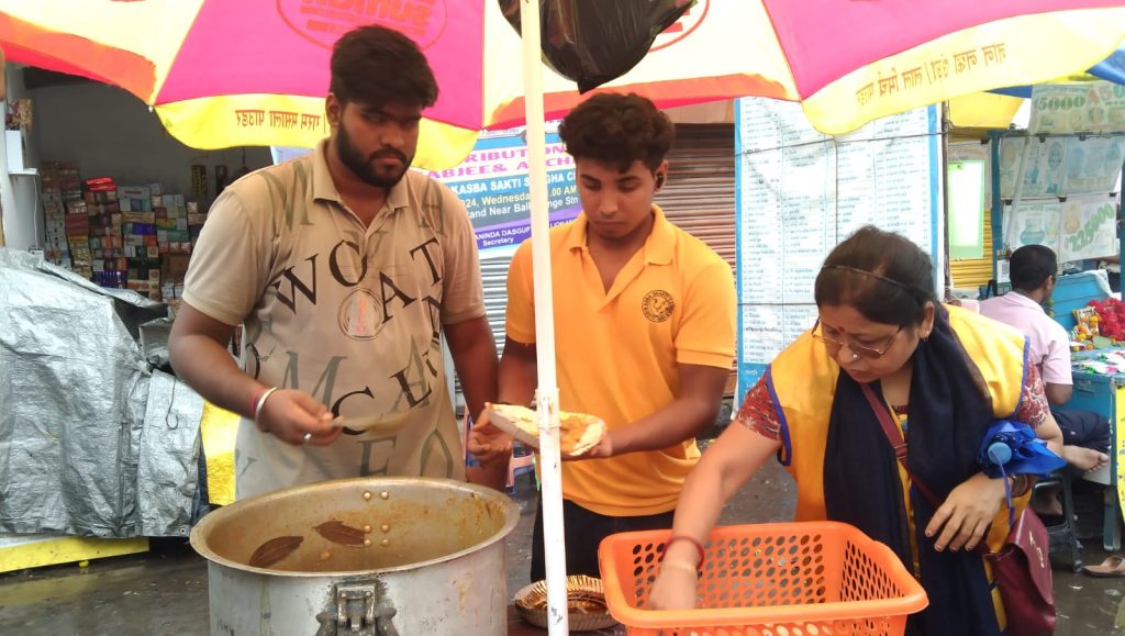 বালিগঞ্জ রেলস্টেশন সংলগ্ন এলাকায় পথচলতি মানুষের জন্য অন্ন সেবায় কসবা শক্তি সংঘ।
