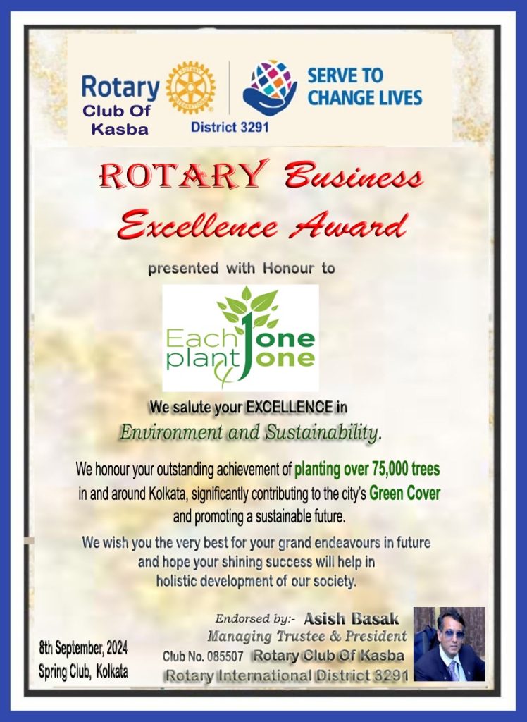 বিজয় এবং অজয়, এনজিও-এর ঊর্ধ্বতন কর্মকর্তা – ‘ইচ ওয়ান প্লান্ট ওয়ান’, 8 ই সেপ্টেম্বর রোটারি ক্লাব অফ কসবার দ্বারা সংবর্ধিত হয়েছে৷
