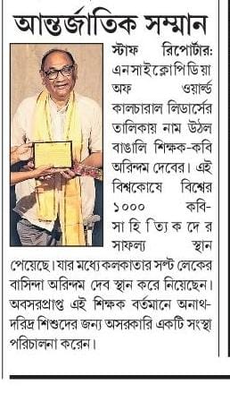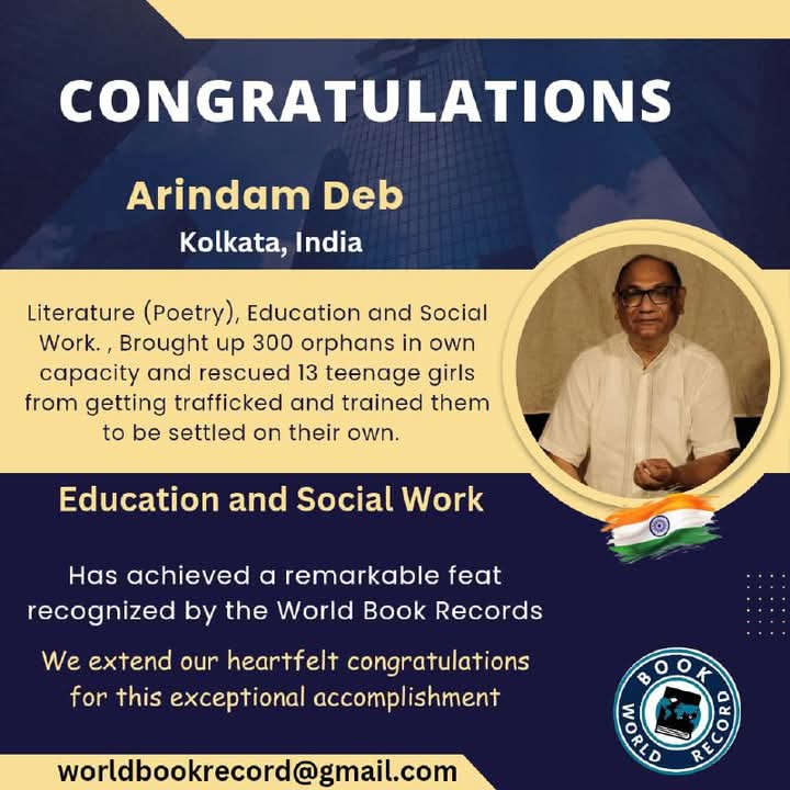 কবি অরিন্দম দেব, বিজ্ঞান ও অঙ্কের শিক্ষক। কলকাতার সেন্ট জেভিয়ার্স কলেজের রসায়নের সাম্মানিক স্নাতক এবং একই কলেজের বি.এড। শ্রী দেব আশির দশক থেকেই তৎকালীন ইউরোপীয় পাদ্রীদের স্নেহধন্য। সেই সুবাদেই মাদার টেরেসার সাথে পরিচয় এবং গরীব ও অনাথ শিশুদের শিক্ষা নিয়ে তার কর্মযজ্ঞের শুরু! ব্যক্তিগত সামর্থ্যে তিনি ৩০০ অনাথের পিতৃসম হয়ে, ১৩ জন নাবালিকাকে পাচার হওয়ার থেকে নাটকীয়ভাবে উদ্ধার করতে সক্ষম হন, মাদারের সহায়তায়।