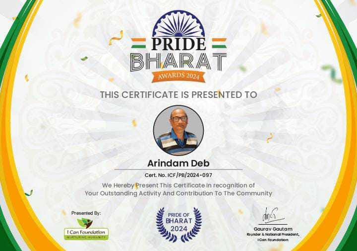 ৩) ২০২৪ এ কেন্দ্রীয় সরকার স্বীকৃত ভারত গৌরব পুরষ্কার, ট্রফি, মেডেল, মানপত্র