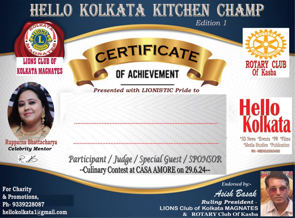 “হ্যালো কলকাতা কিচেন চ্যাম্প – সংস্করণ 1” 29শে জুন, 1 – 4 টায় কলকাতার CASA AMORE, EM বাইপাস-এ খুব ধুমধাম করে অনুষ্ঠিত হয়েছিল।