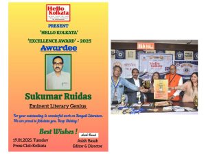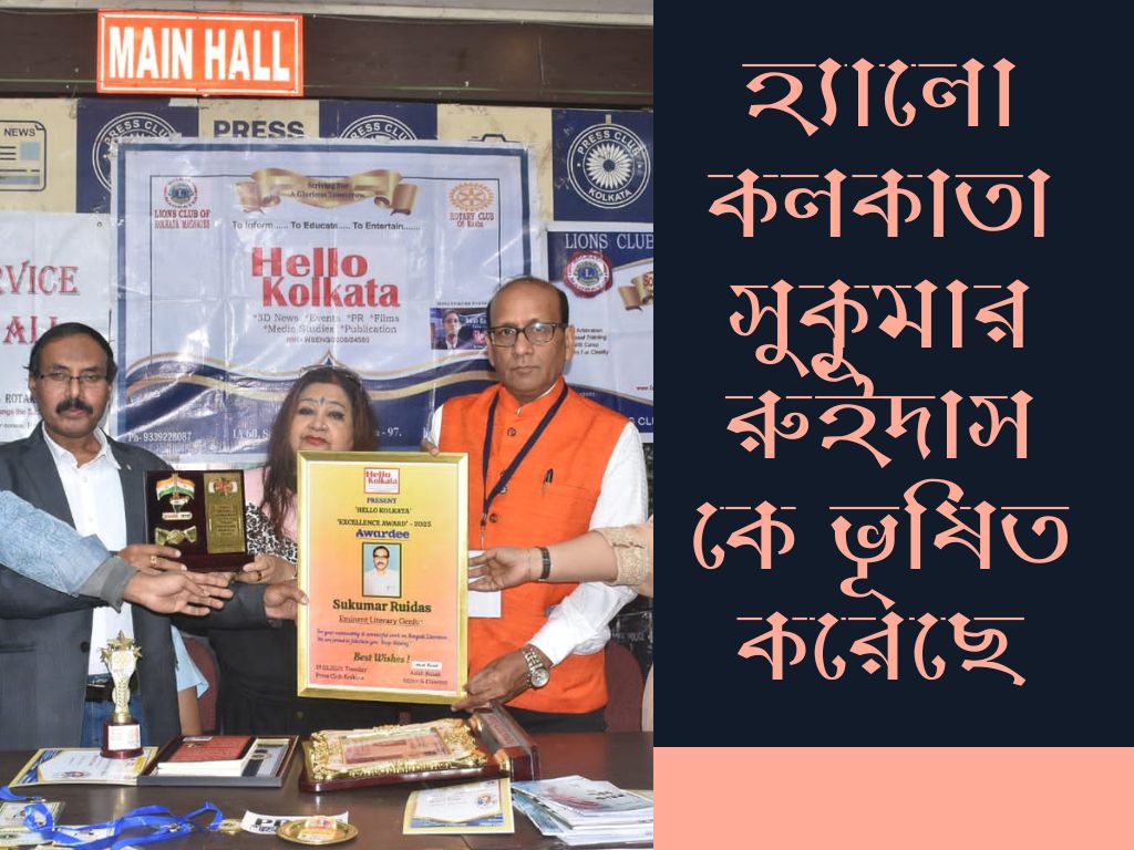 ১৯ জানুয়ারী কলকাতা প্রেস ক্লাবে বিশিষ্ট সাহিত্যিক ব্যক্তিত্ব সুকুমার রুইদাসকে ২০২৫ সালের হ্যালো কলকাতা সাহিত্য শ্রেষ্ঠত্ব পুরস্কার প্রদান করা হয়।