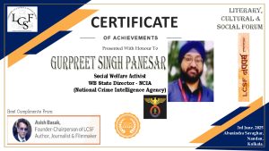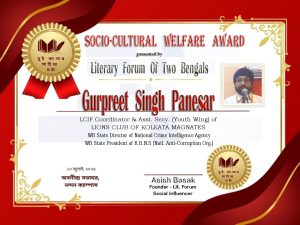Apart from LIONS, Gurpreet is holding other esteemed positions such as West Bengal State Director of the National Crime Intelligence Agency(NCIA) and West Bengal State President of R.B.N.S (National Anti-Corruption Organisation).