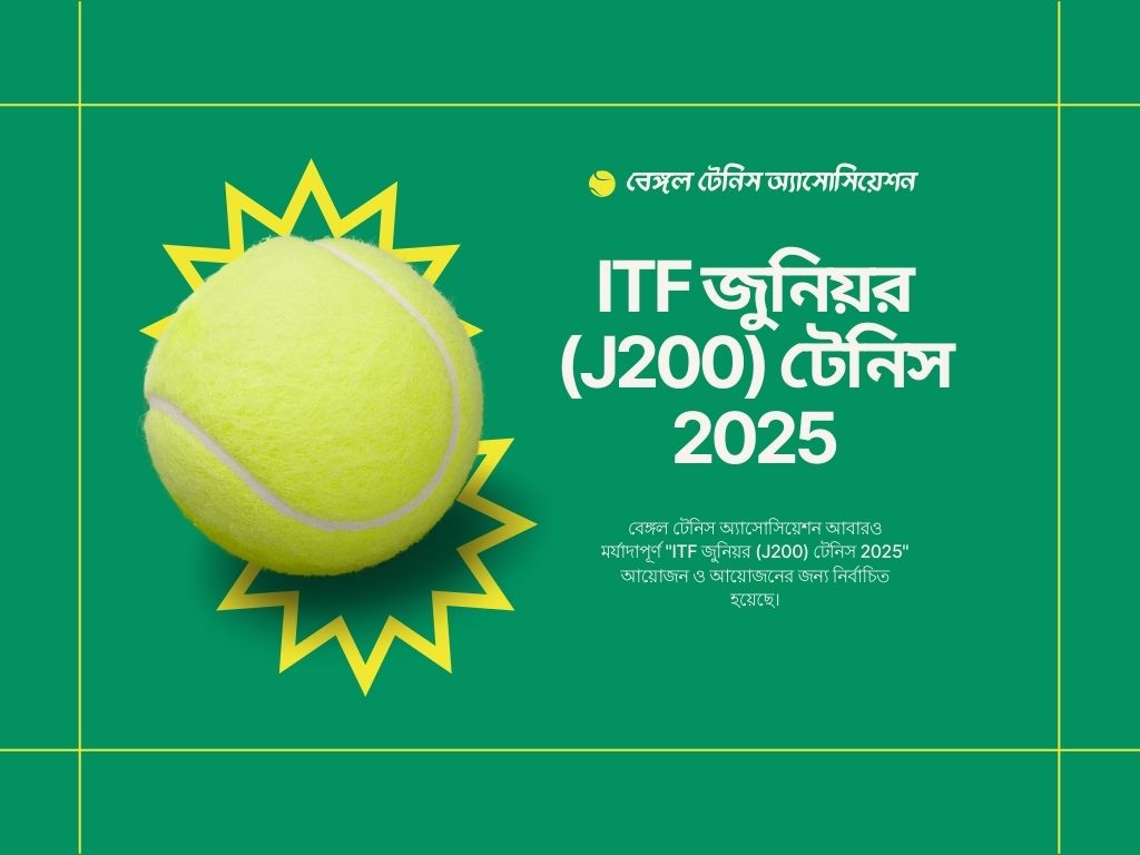 বেঙ্গল টেনিস অ্যাসোসিয়েশন আবারও মর্যাদাপূর্ণ “ITF জুনিয়র (J200) টেনিস 2025” আয়োজন ও আয়োজনের জন্য নির্বাচিত হয়েছে।